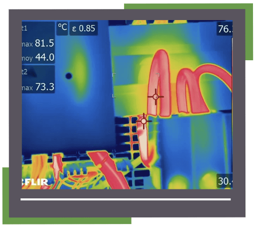 La thermographie infrarouge est une technique d’inspection qui utilise une caméra thermique pour visualiser la distribution de la température sur les équipements électriques en fonctionnement. Sans contact et sans interruption du courant, elle permet de repérer des points chauds invisibles à l’œil nu, signes possibles de défauts ou d’anomalies.